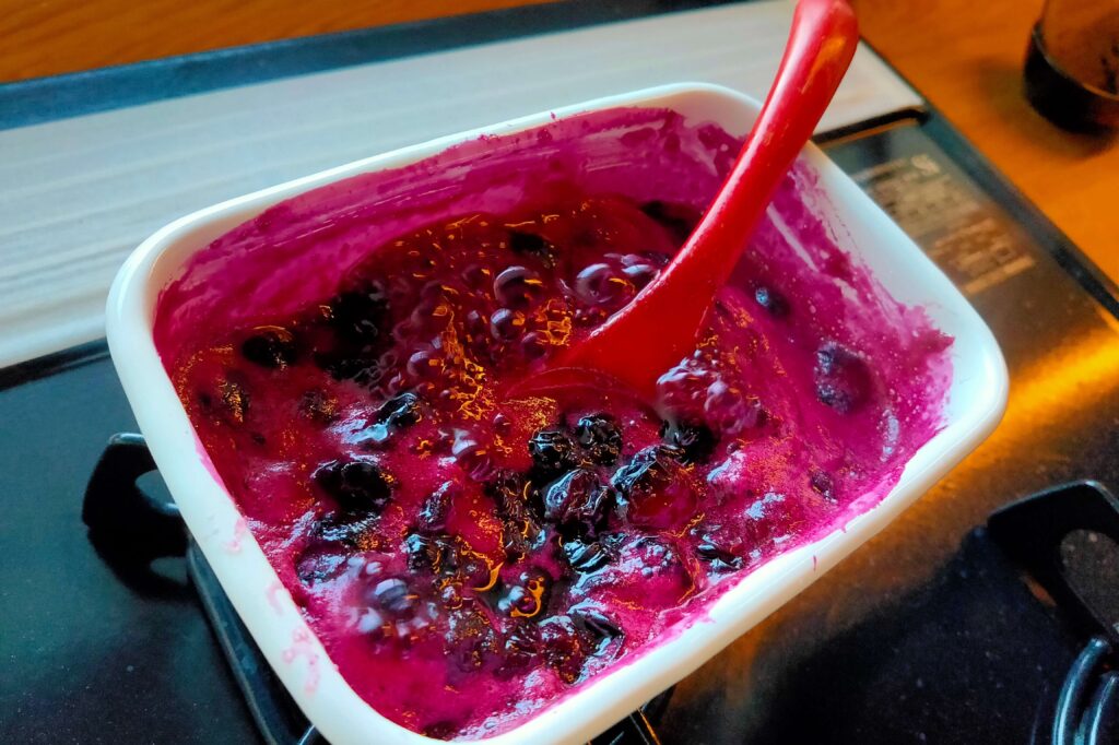 友人の家の庭でなっているブルベリーをたくさん摘ませていただいたので、琺瑯容器でジャムを作りました。